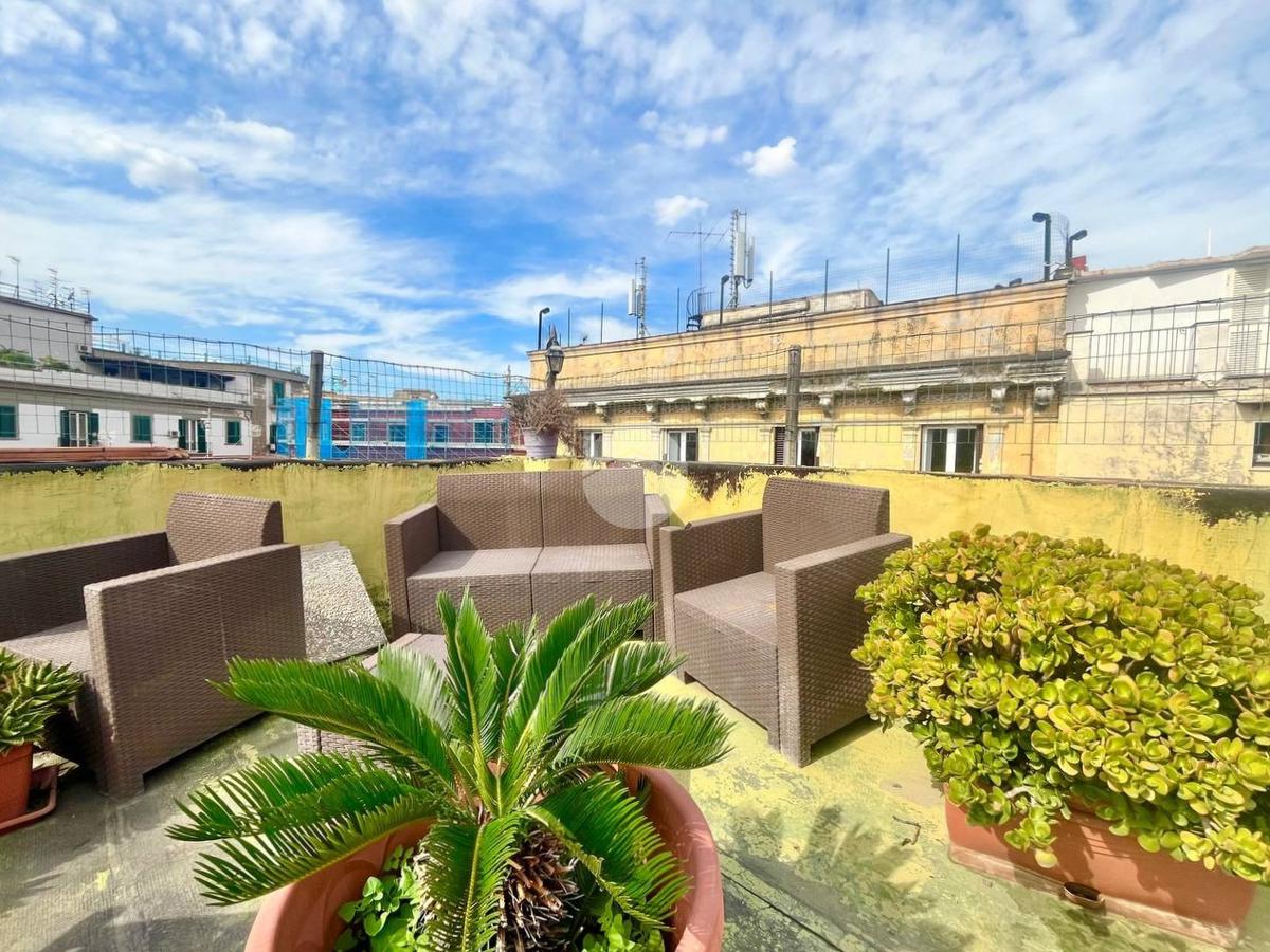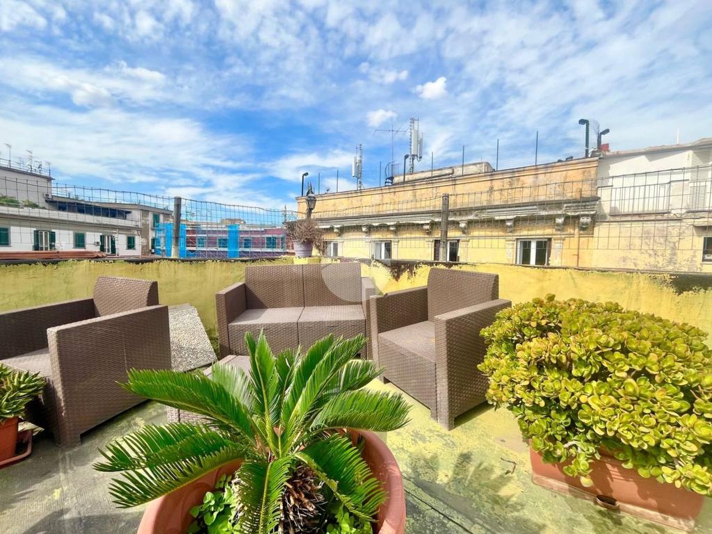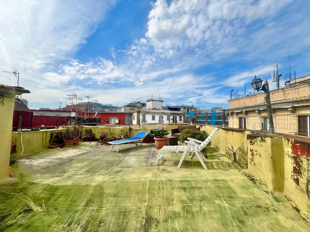 Nel cuore pulsante del centro storico di Napoli, a pochi passi da Corso Umberto, dal Duomo, dal Porto e dalle principali sedi universitarie, proponiamo in vendita: appartamento di circa 80 mq con terrazzo panoramico di 50 mq e dotato di doppio ingresso, situato a un piano alto di uno stabile d'epoca.