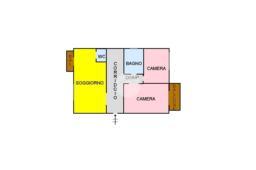 L'ingresso conduce in un ampio salone con cucina living, ambiente luminoso e funzionale servito da balcone, mentre la zona notte comprende due camere da letto, di cui una con balcone, che garantiscono comfort e luminosità.